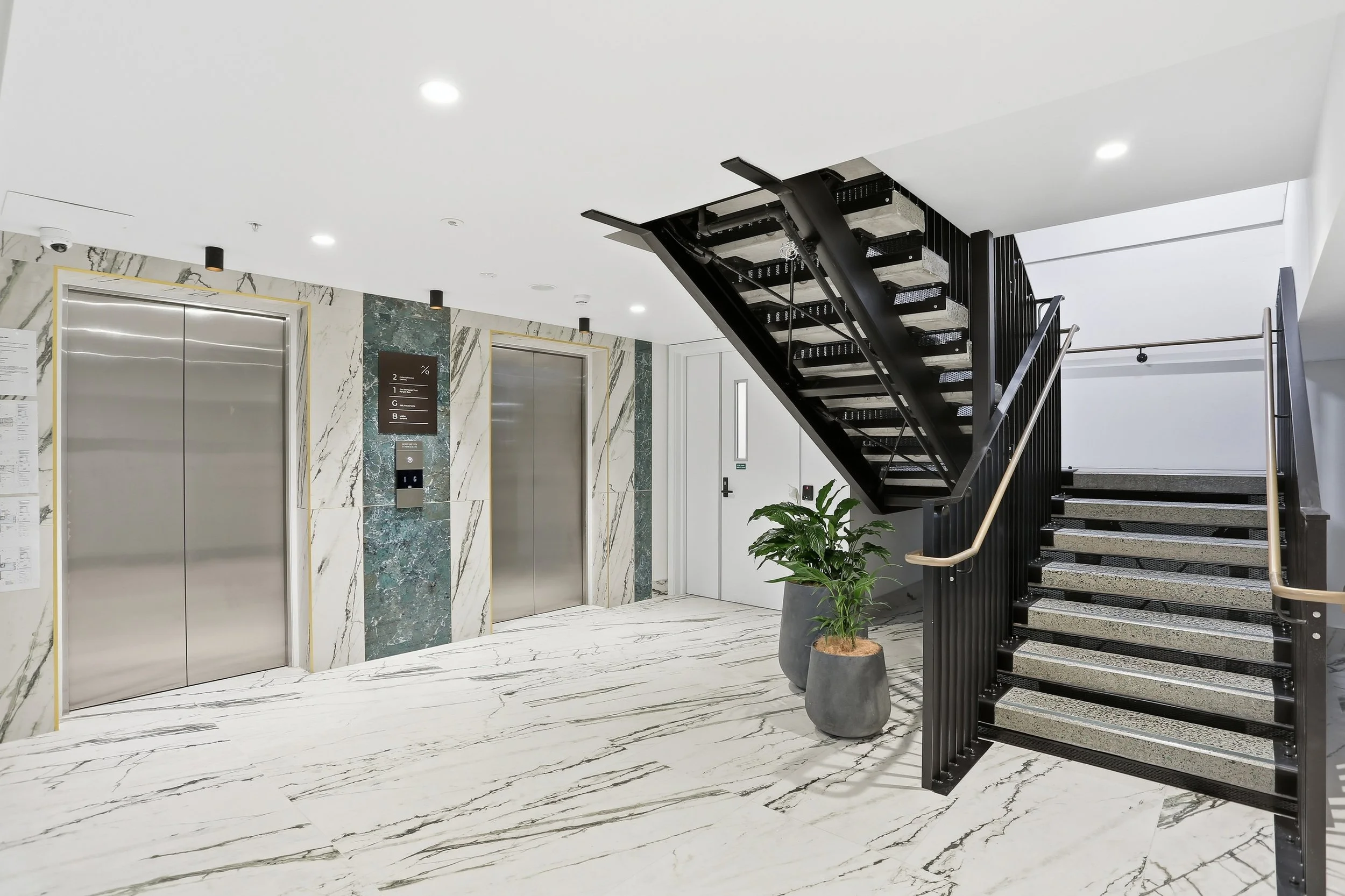 The interior design of Northern Quarter Stage 1 was shaped with careful consideration to create striking, engaging spaces that elevate the everyday experience. From the main lobbies to the end-of-trip facilities, each area has been crafted to balance visual impact with practical functionality. Every detail supports the daily rhythms of the building’s users, ensuring the interiors feel both purposeful and memorable, and reflect the same modern heritage vibe of the building’s exterior.